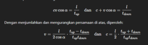 Jika diketahui jarak antara transduser pemancar dan penerima serta sudut kemiringannya, maka hubungan tersebut dapat dituliskan sebagai: